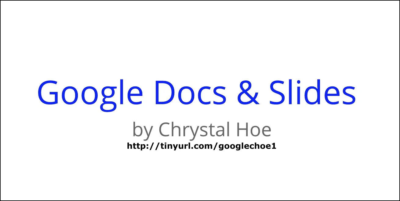 Google Docs + Google Slides Field Guide: Chrystal HoeWebsite: http://www.chrystalhoe.com/Twitter: @cehoerunGoogle+ GAFEChrystal HoeJuly 10, 2016Docs, SlidesComment Facebook0 Twitter LinkedIn0 Reddit Tumblr Pinterest0 0 Likes